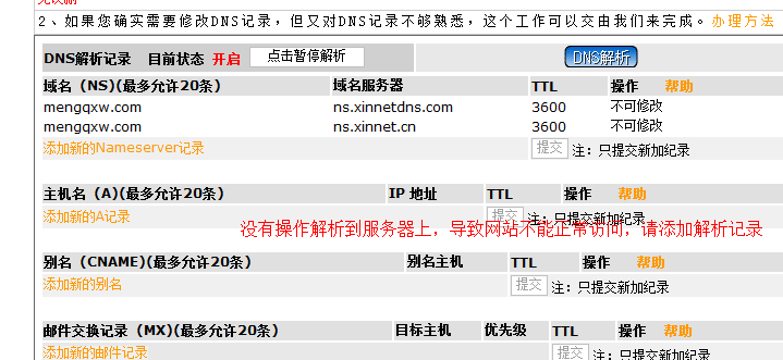 1、 解析没做或者解析错误,以www.mpwlkj.com为列